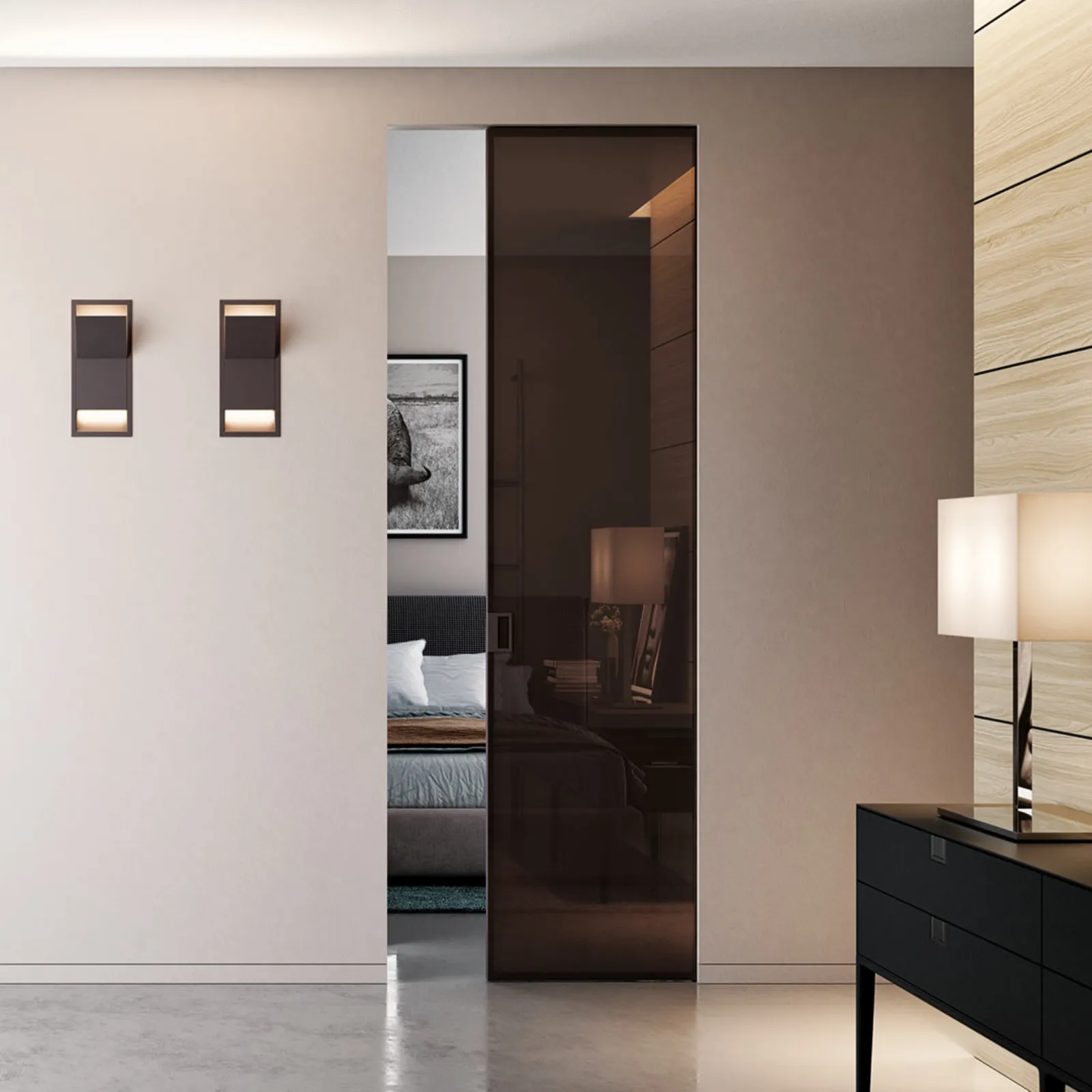 porte scorrevoli in cristallo filo muro