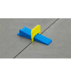 Il cuneo, con una lunghezza di 90 mm e una larghezza di 22 mm, viene inserito durante la posa all’interno del livellatore e, grazie al suo fissaggio con la pinza, consente di ottenere la planarità tra piastrelle adiacenti.