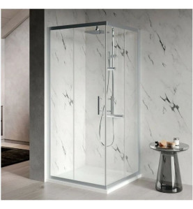 Il box doccia è composto da una anta scorrevole e una fissa, entrambe realizzate in cristallo trasparente temperato da 6 mm, che garantisce la massima resistenza e sicurezza durante l'utilizzo.