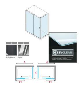 Il box doccia è composto da una anta scorrevole e una fissa, entrambe realizzate in cristallo trasparente temperato da 6 mm, che garantisce la massima resistenza e sicurezza durante l'utilizzo.