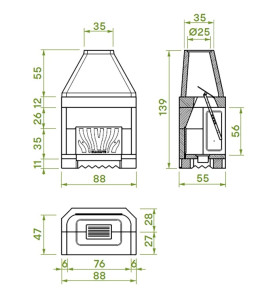 Le speciali grecature esterne nei focolari Patio assolvono la triplice funzione di: