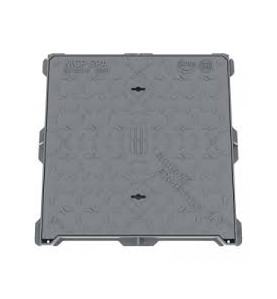 Coperchio di forma quadrata munito di: sistema di chiusura, sbloccabile con una generica leva, formato da appendice/i elastica/che opportunamente sagomata/e che si incastra/no con il/i nasello/i presente/i sul telaio; asola/e a fondo chiuso idonee ad accogliere le chiavi di sollevamento;