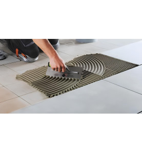 Formati grandi, rettangolari con lato > 60 cm e lastre a basso spessore possono necessitare di una stesura di adesivo anche direttamente sul retro del materiale. Verificare a campione l’avvenuto trasferimento dell’adesivo al retro del materiale. Rispettare i giunti strutturali, di frazionamento e perimetrali presenti nei fondi. Attenersi alle norme locali vigenti per la realizzazione dei giunti elastici di dilatazione. Norma UNI 11493 – i giunti devono suddividere la superficie in aree di dimensione: - ≈ 10 m² in esterno - ≈ 25 m² in interno Pulizia La pulizia degli attrezzi e di eventuali residui di H40 Extreme dalle superfici rivestite si effettua con acqua su adesivo fresco. Ad indurimento avvenuto l’adesivo può essere rimosso solo meccanicamente o tramite il pulitore Fuga-Shock Eco.