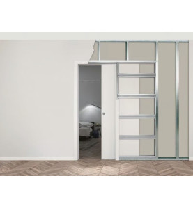 Adatto a tutti gli ambienti della casa, questo sistema permette di alloggiare una porta a scomparsa ad anta singola.