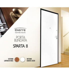 Porta blindata , liscia sinistra, marchio Dierre, linea Sparta 8, per chi ama la semplicità nelle forme ma desidera al contempo godere di una robustezza in grado di sfidare il tempo.