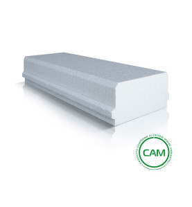 Elemento sagomato termoisolante in polistirene espanso sinterizzato a celle chiuse, di colore bianco, con euroclasse E di reazione al fuoco, conformi alle norme UNI EN 13163, a marchio CE.