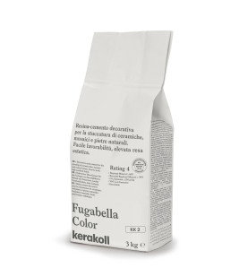 disponibileFugabella Color KK2 Resina-cemento decorativa per la stuccatura di ceramiche, mosaici e pietre naturali. Facile lavorabilità, elevata resa estetica. Raggiunge caratteristiche di idrorepellenza, ridottissimo assorbimento d’acqua, alta durezza superficiale, elevata resistenza alle sostanze acide più comuni e totale uniformità del colore.